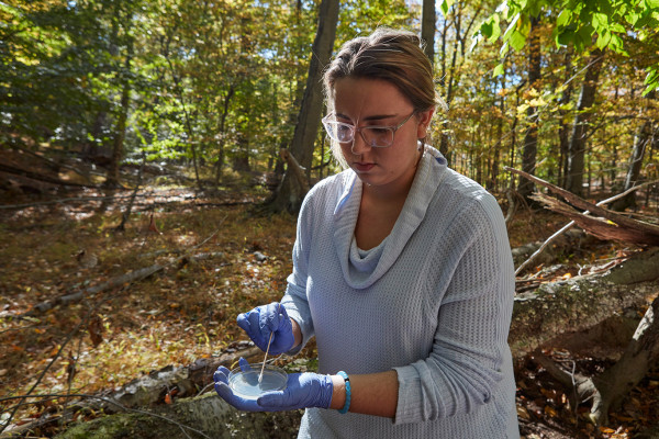 Research: I am interested in the abiotic & biotic drivers of community structure and dynamics of microorganisms and how the change of structure might related to a change in function. Specifically, I research how soil fungal communities associated with northeastern tree species are structured through space and time and how these communities are impacted by disturbance.